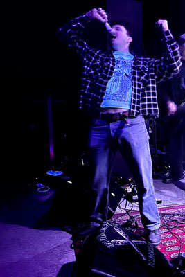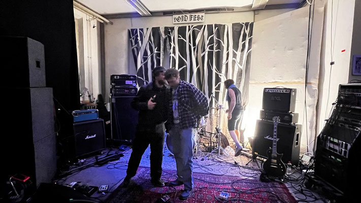 To quote AC/DC: It's a long way to plk if you wanna rock 'n' roll. These 300 km from Munich to Regensburg were well worth it. The plk is the epitome of avant-garde underground since the air raid shelter in Stuttgart where I saw Zygote in 1991. The area is currently surrounded by construction sites and demolished barracks, so this cultural center is also walking a tightrope. It would be a shame if this place, which offers the region an interesting subculture, will disappear soon. By requiring advance registration, the organizers of the VOID-Fest made sure there were enough paying spectators for the two bands. And those who came certainly didn't regret it. "Versus God" came across as incredibly old-school, from their 80s crust core sound to the analog Sony camcorder they used to film their first show. The sound was brutal, loud, and surprisingly nuanced for this venue – not muddy at all – which made listening to this relentless D-beat onslaught a real pleasure. Their set lasted about 30 minutes. After that, my neck muscles were definitely aching.