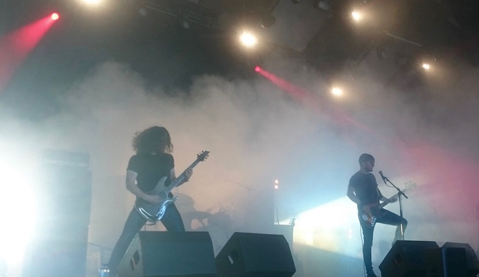 Holy shit! These Frenchies skipped from Doom to Sludge to Stoner to Hardcore to Screamo in just one song with an incredible loud and clear sound early supported by a permanent stroboscope at machine gun speed in the morning. It was good but only 20 minutes to stand it.